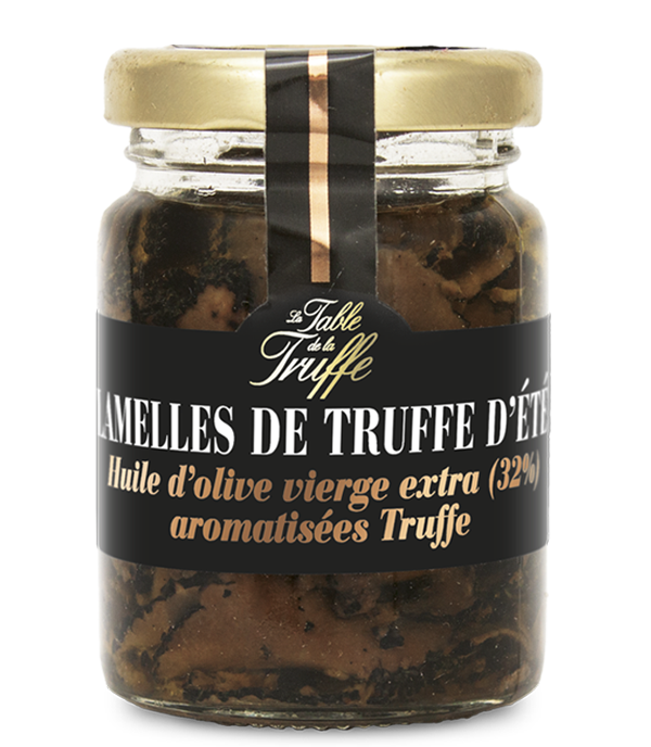 Lamelles de truffes d'été et huile d'olive extra vierge (32%) aromatisées truffe